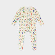 1 x 100% Organic Cotton Crayons Sleepsuit with Peek-a-Boo flap, integrated fold-over hand mitts and built-in feet